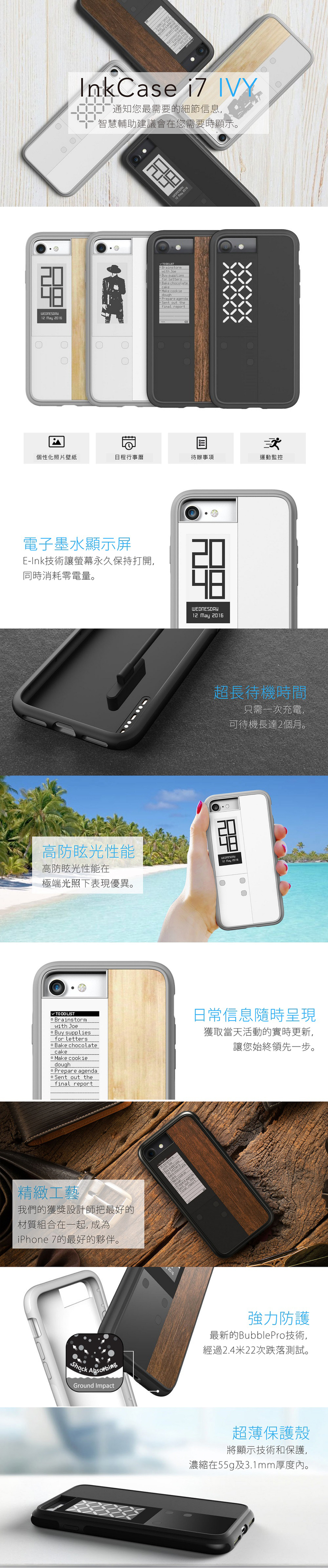 來自【有.設計uDesign】,多功能專屬App,可管理電子書、顯示QR code、活動折扣條碼、時間、等重要資訊世界上第一支讓手機擁有雙螢幕的手機殼iPhone 7 手機殼搭配E Ink電子墨水技術,讓待辦事項、時鐘、天氣、顯示於第二螢幕多功能專屬App使用藍芽與手機配對即可使用客製化編輯喜愛的圖片,隨時傳送至手機背面