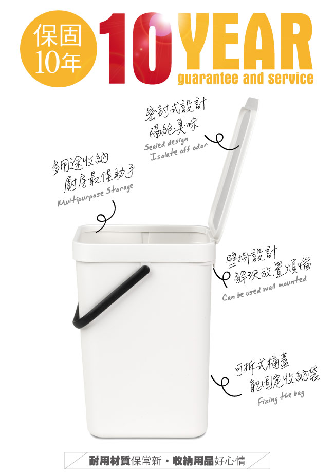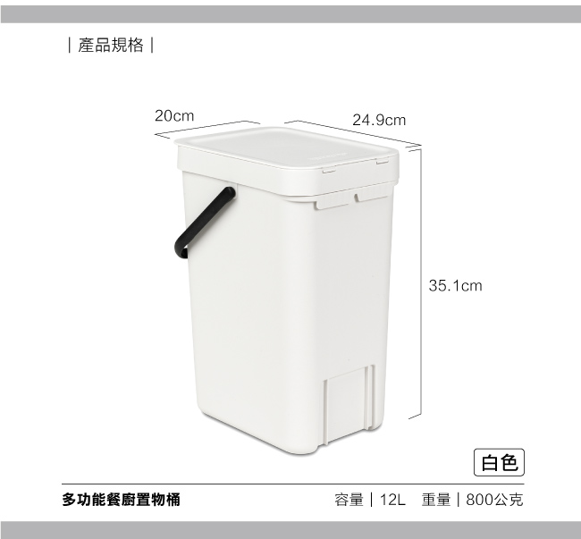 Brabantia|多功能餐廚置物桶12L-白色