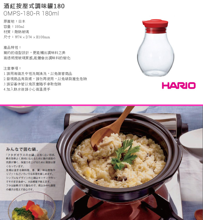 HARIO|酒紅按壓式調味罐180 OMPS-180-R 180ml