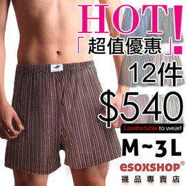 None, 【esoxshop】╭*HUSSAR 精梳棉風格平口褲 12件$540╭*多款花色隨機出貨╭*潮流款《短褲/休閒褲/家居褲/四角褲/內褲/9S》。在樂天市場的衣襪酷 EWAKU有最棒的商品,是您省錢的最佳選擇。